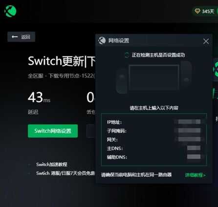 【4】开启加速之后,进入Switch网络设置界面,选中点击下方设置按钮进入;