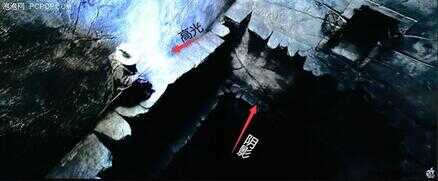 另外一个电影活埋的场景里,高光得到了很好发挥,同时暗部有轻微泛白迹象,但整体依旧是可以很高水准的控制背光不要明显溢出,光的输出和表达比较均匀。