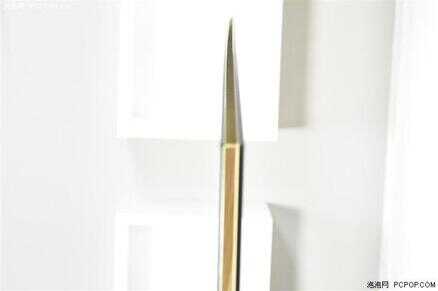 机身的边框依旧采用金属材质拼接处理,接缝精度较高。在边框的最外侧是以双45°钻切处理的装饰条,金色、晶格纹理,想不把视觉中心落在这抹耀眼的边框很难,它是整机外观的亮点之一。