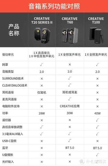 (2)、T60有USB声卡,如果需要用到这些功能可以选择T60,T20 II、T100有防尘罩,T60没有,喇叭单元外露