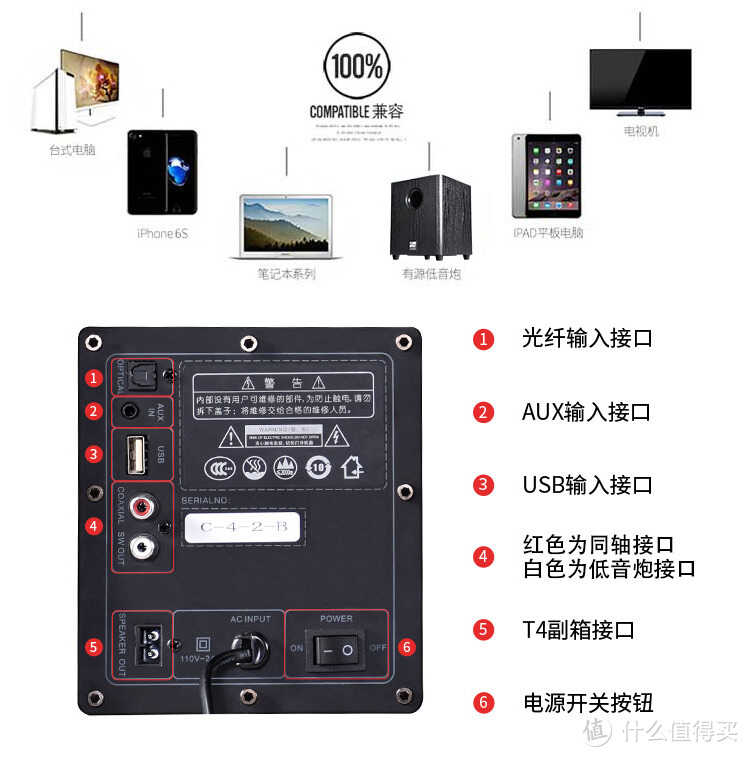 输入方式:RCA、光纤、蓝牙