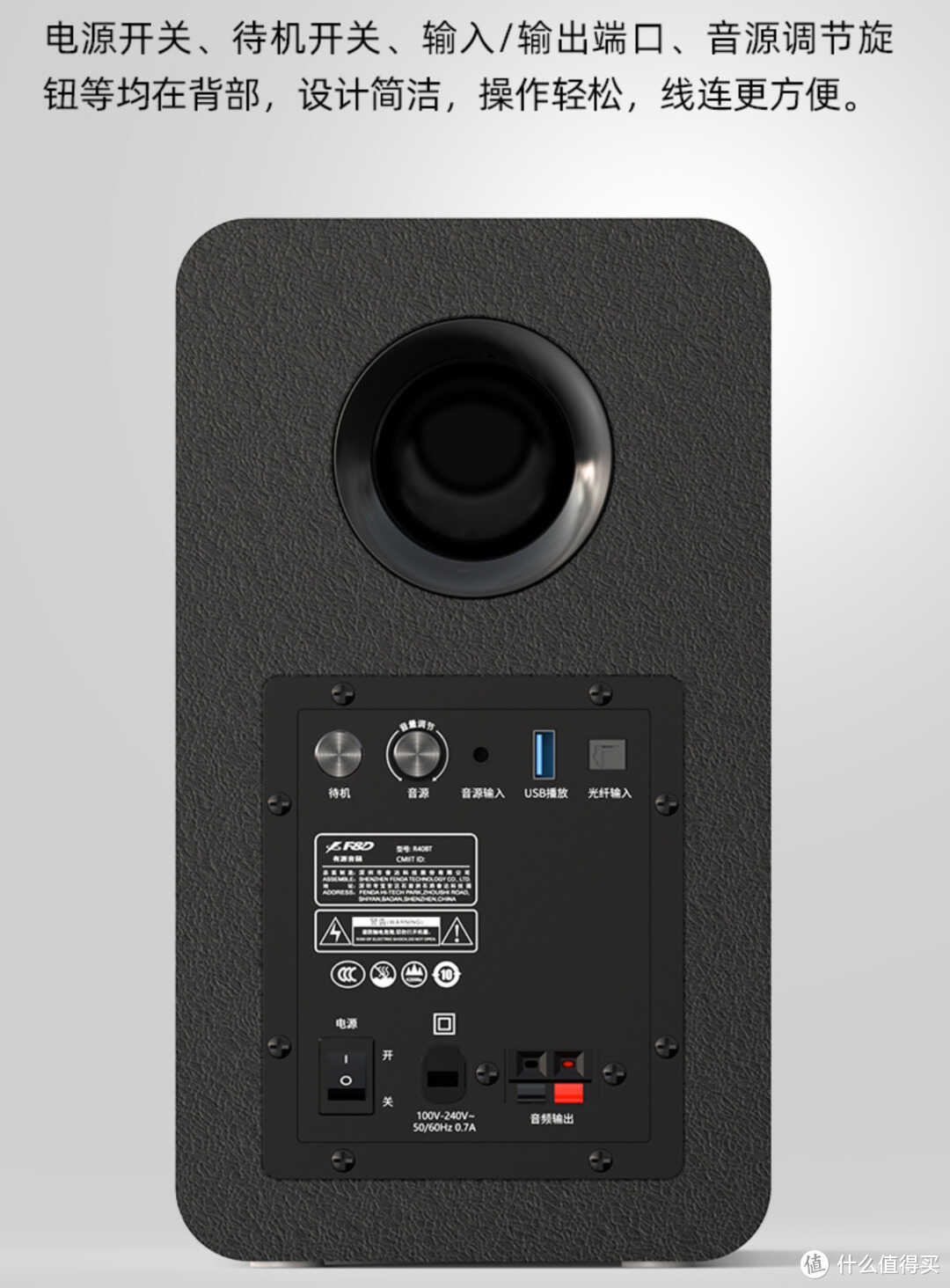 采用4英寸中低音单元+3/4英寸高音两分频设计,主音箱背面设计低音音量调节旋钮