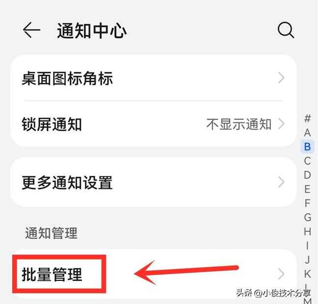 第三个关闭应用通知,我们经常会发现,手机在锁屏之后,依然有很多消息和通知,会在后台一直滴滴地提醒我们,而且手机屏幕也会时不时亮起,这样不仅非常耗电,耗流量,而且还容易泄露我们的隐私,所有我们需要把手机中一些不必要的应用通知给关掉,那么我们在设置中,找到【通知中心】,对通知进行设置,我们点击【批量管理】,在这里面我们把一些不必要的应用通知提醒开关关掉,保留一些常用的就可以了!