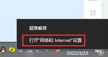 1、鼠标指向电脑右下角小电脑(或WiFi)图标,单击右键,点击【打开''网络和Interet''设置】;