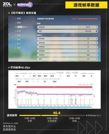 最后咱们来聊聊性能,由于供应限制,华为Mate Xs 2仍然使用了4G版骁龙888处理器,不过其性能表现也足够满足日常使用。为了实际测试其性能表现,我们直接使用《原神》对其进行了测试,在极高画质+60帧的设定下,华为Mate Xs 2的平均帧率为46.6帧。帧率曲线较为平缓,实际游戏体验没有明显卡顿,达到了骁龙888处理器的平均水平。
