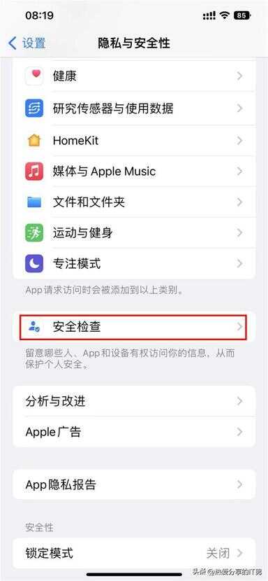 在之前版本的iOS里,并没有一个统一的界面来快速重置这些授予他人的隐私权限,但如果你的iPhone系统升级到iOS 16就能在新增加的“安全检查”设置界面方便快捷地统一管理这些共享权限了。操作方法如下: