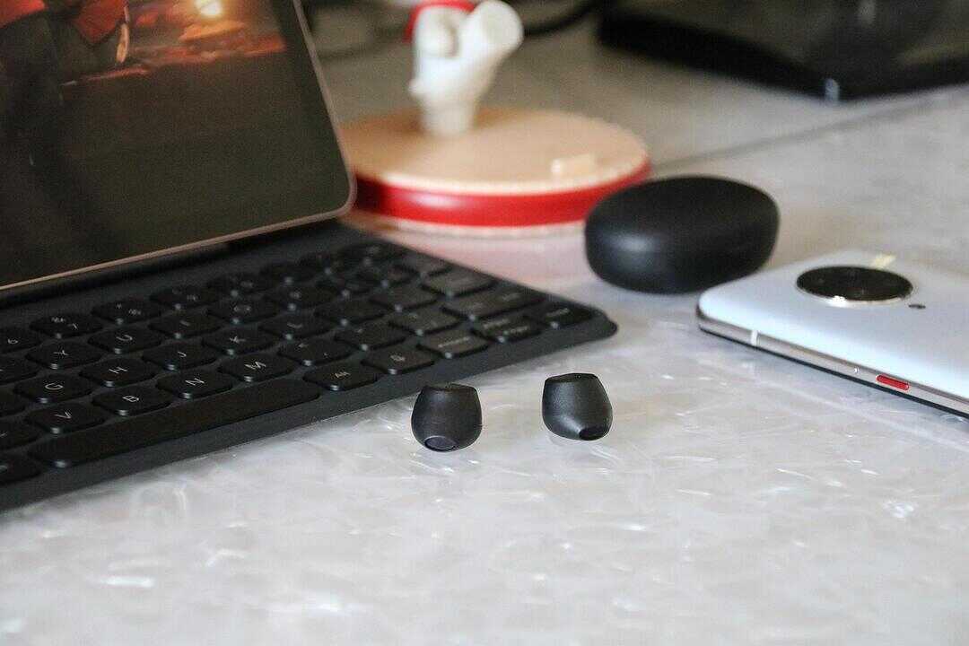 从外观上看,JEET Air2真无线蓝牙耳机给人的感觉就是特别小巧的感觉,并且它的重量也是非常的轻,一只耳机仅只有3.4克左右,所以戴在耳机上就没什么束缚感,这也是这款耳机主打的舒适度原因,加上它这种半入耳式的设计,长时间佩戴也不会出现耳朵轮廓有那种痛疼感。