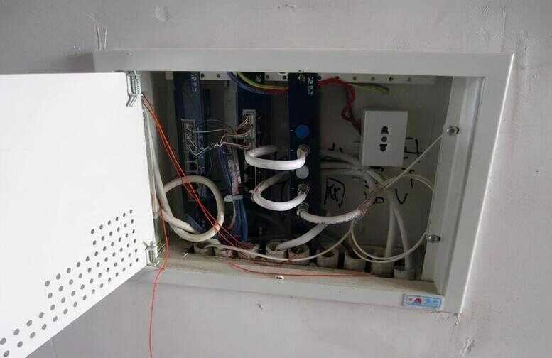 在你怀着喜悦的心情步入自己的新房的时候,你可以在室内各个墙壁的下部找一个白色的铁皮小门,打开之后,你会看到里面有一根白色或者黑色的细线头(入户的光纤),这就是你室内的弱电箱,网络布线的工作,从这里开始就是源头。
