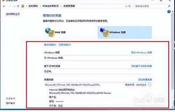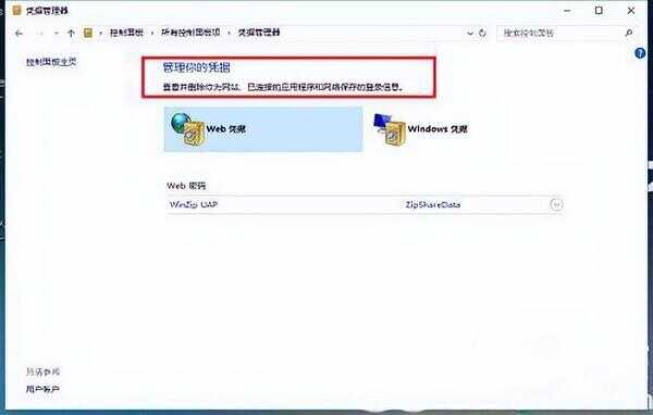 3、进去凭据管理器之后,可以看到关于功能的介绍,主要用于查看并删除为网站,应用和网络保存的登录信息。