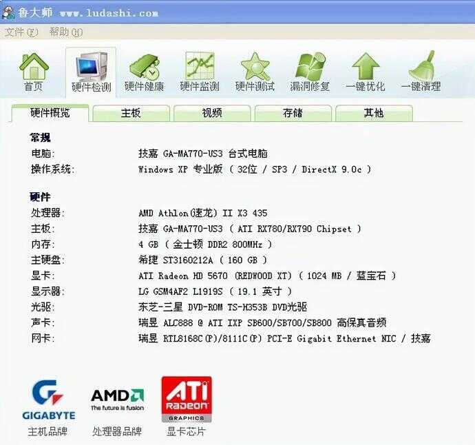 方法三:还可以借助于第三方软件,如“鲁大师”,在鲁大师主界面点击“硬件检测”就可以看到电脑的配置及硬件型号。(如图3)
