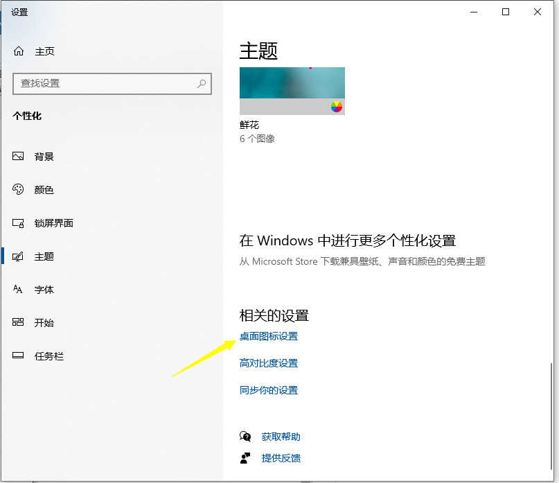 3.点击主题选择项,右侧向下寻找桌面标志设置这一选择项。