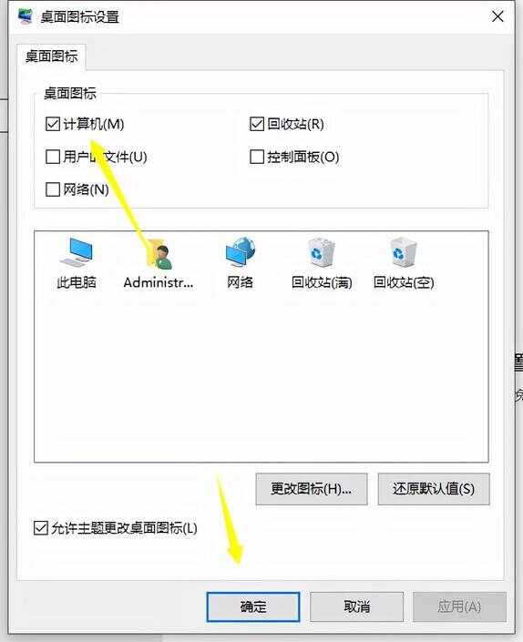 4.点击桌面标志设置,在桌面标志设置网页页面启用电子计算机这一标志,随后点击运用,回到桌面查询便会发觉此电脑图标就在桌面表明了。