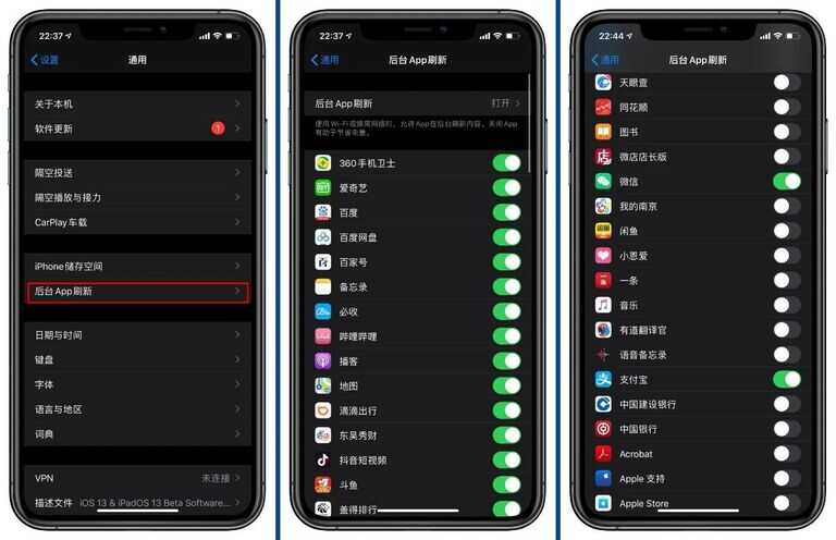 进入iOS 「设置」>「通用」>「后台App刷新」,将不常用和不需要持续在后台不断刷新的App给关闭,仅需要留下高频日常app和需要在后台工作的软件(导航app和打车app这类)