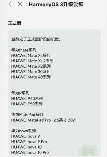 目前已经有20多款华为手机可以升级到鸿蒙3.0正式版了(如下图)。如果你的手机在这批名单当中,可以先升级到鸿蒙2.0的基线版本,然后再升级鸿蒙3.0。