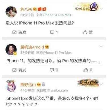 根据苹果的数据显示,iPhone11系列搭载的是A13处理器,是全球目前最强大的处理器,在发布会上苹果更是直接表示A13可以拳打骁龙、脚踢麒麟,还有三星猎户座看都不用看,A13也是A12的常规升级,不过现在看来,苹果翻车了。其实发热并不是到了A13才出现的,早在A12上就已经很明显了,iPhone采用的是双层主板的设计,日常使用是感受不到的,但是如果一玩游戏,那温度可就上来了,长时间玩游戏就会比较烫手了,当然安卓手机也有出现过这种情况的时候,不过相对这一次苹果来说,发热没有这么严重。目前发热源头是处理器A13还是主板还不得而知。