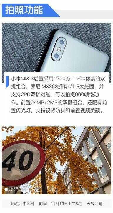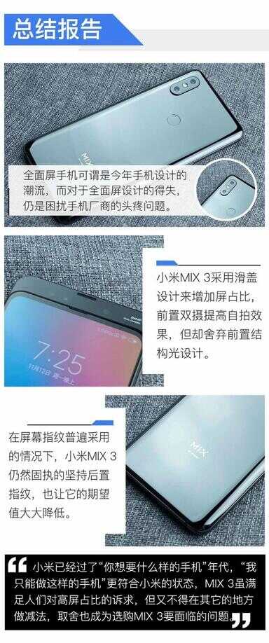 说到这里,就不得不说下小米MIX 3的下滑盖设计,很反MIX系列的设计,前几代MIX一直都是下部放置前摄像头,按道理讲小米MIX 3应该采用上滑盖设计,然后前摄像头放置在底部才对,看来小米认识到了下部的前置摄像头很影响用户的体验。