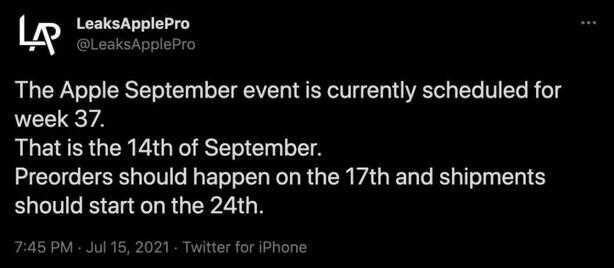 其他方面,什么双扬声器、线性马达、IP68、NFC等等,也都不会丢掉,根据最新消息称,iPhone 13系列将于今年9月14日发布,现在算算时间,也还不到2个月。对新iPhone确实期待的朋友,可要再耐心等等了。