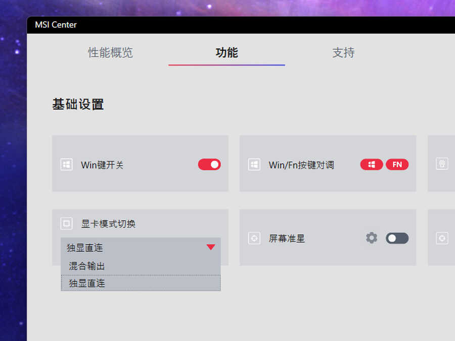 以微星强袭GE76这款游戏本为例,其开启独显直连的方法是在MSI Center主控中心里面进行的。