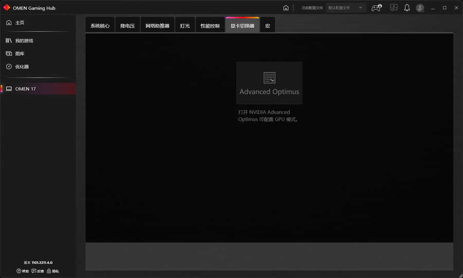 在“OMEN 17-显卡切换器”界面下,可以设置显卡模式。