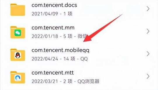 4、接着进入“com.tencent.mobileqq”文件夹。