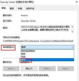 3、在页面的常规项,把启动类型改为禁用即可。