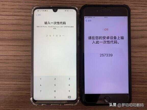 2. Android与iPhone设备点击「继续」后,在iPhone上会显示一组转移代码,回到Android设备输入这组代码