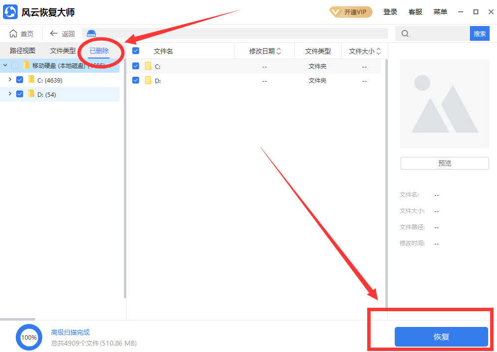 使用风云恢复大师,这款工具操作简单,功能齐全,不仅能恢复硬盘里的内容,同时在电脑桌面和回收站等位置的文件也可以找回来。