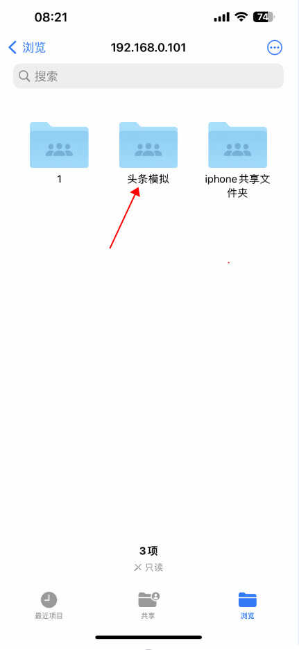 选择下一步就可以看到所有你在电脑端设置的共享文件夹,到这里就相当于打通了Windows和iPhone连接的通道。可以把通道放在这里,后续如果出现不稳定,可以删除ip再重新链接以上步骤,这个就是开篇说的,可以使用,但手机版本之间存在不稳定性。