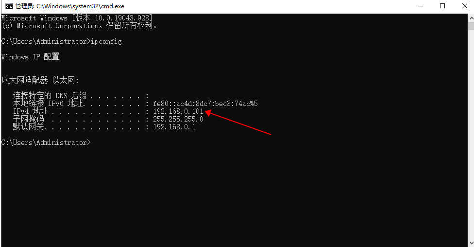 红标箭头部分就是你使用电脑的IP地址,放在这里查看或者记住。