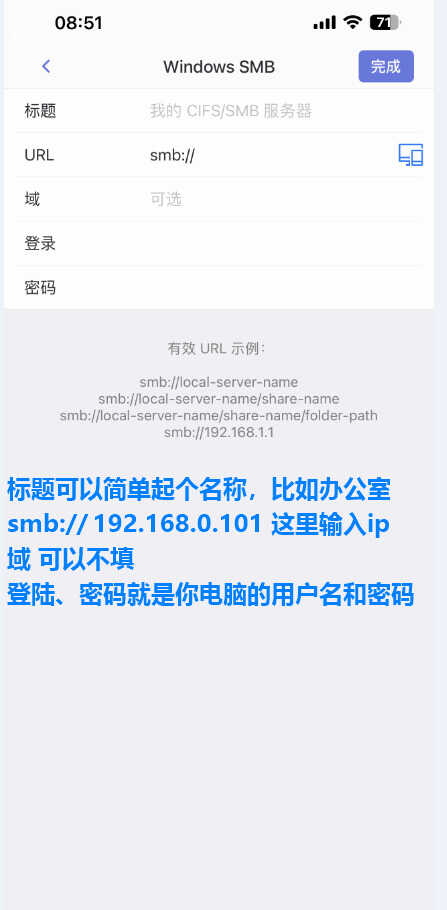 右下角大+号点开可以直接选择【添加连接】——Windows SMB