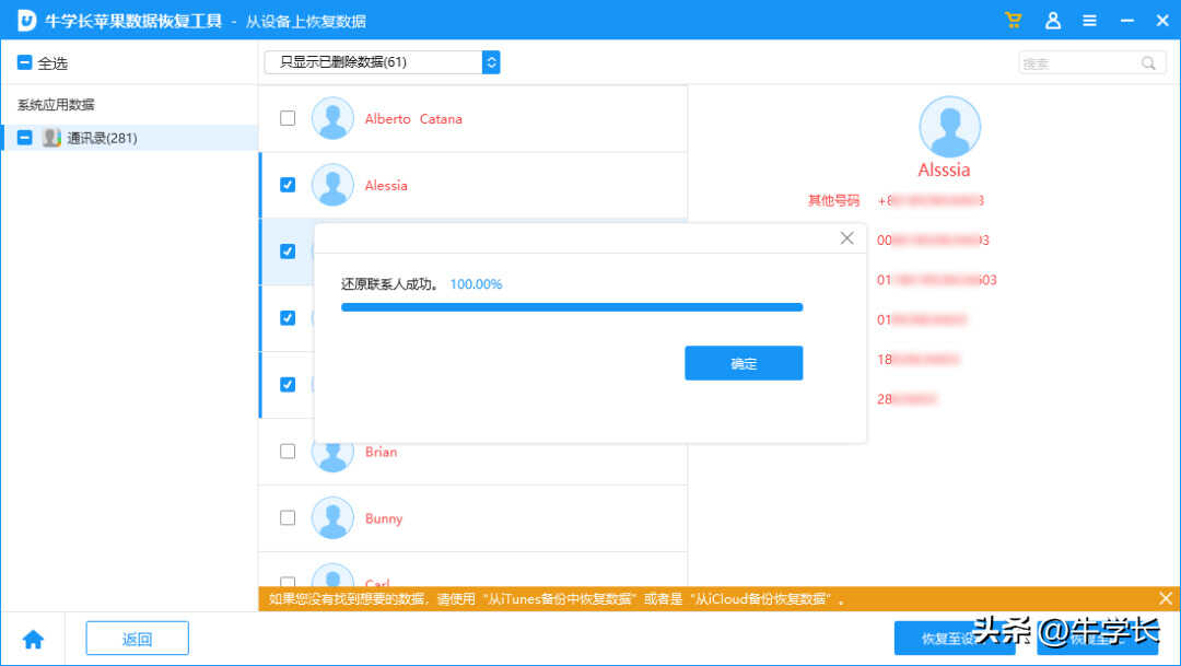 牛学长整理了 2 个方法,可帮你快速找回iPhone通讯录联系人!