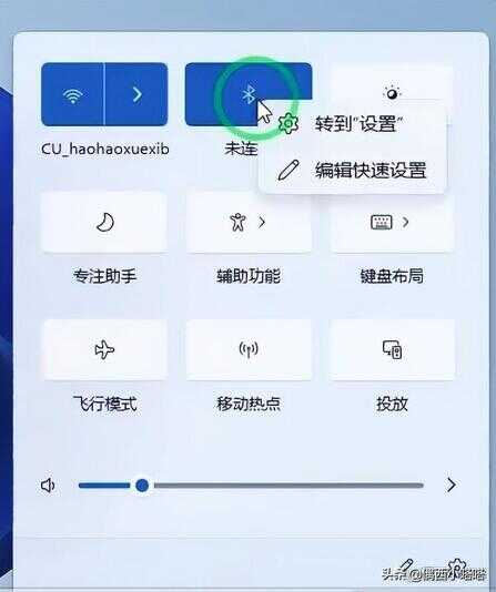 1、电脑右下角,点击wifi,就会打开下图弹窗,弹出里就可以看到蓝牙图标,点击蓝牙: