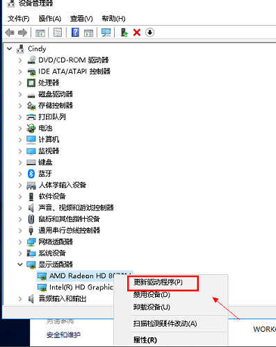4、电脑有双显卡,我们右键单击独显选择更新驱动程序