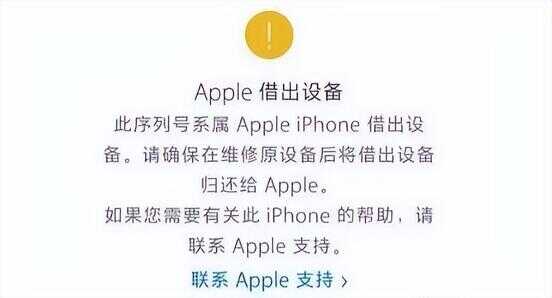 去苹果官方检测设备问题时,有的设备需要返厂检测或维修的,售后人员会临时给你一个备用机,这种设备一般在市场上是不允许买卖的。此类设备都有特殊标记,查询序列号也会显示是借出设备,官方不保修。以下是官网查询结果: