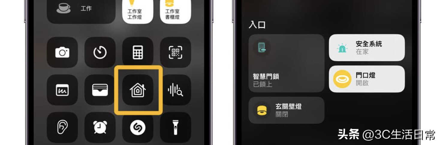 在使用家庭 HomeKit 配件,可以在控制中心快速操作,不用打开应用程序。
