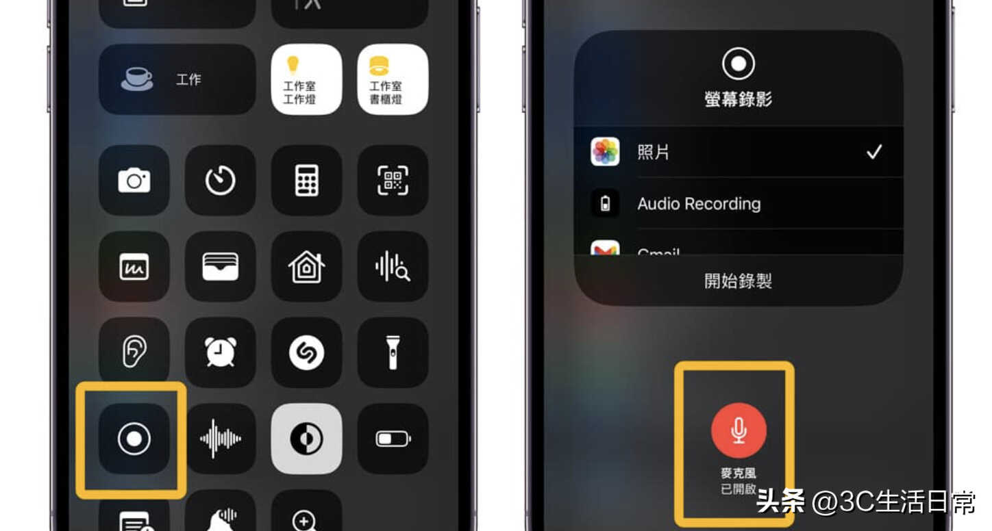 长按“屏幕录制”,点击下方的“麦克风”,在屏幕录制时,就可以录制外部声音。