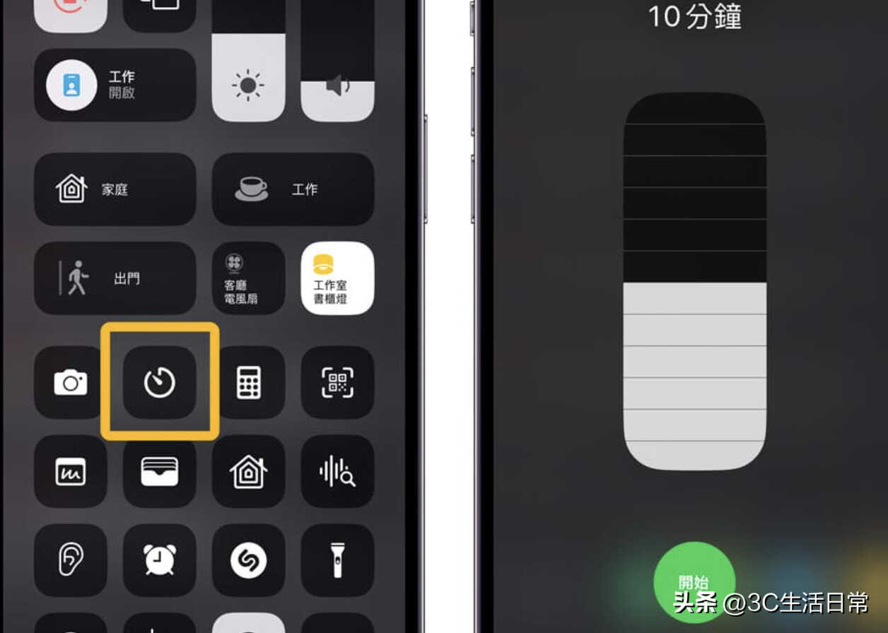 不管是在厨房还是工作安排,我们经常会需要用到计时器,只需将“计时器”添加到控制中心,长按“计时器”,就可以设置想要倒数计时的时间,点击“启动”。