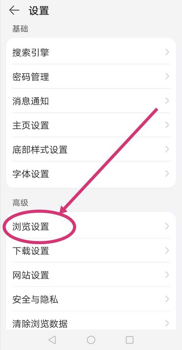 (3)然后在设置页面里面,点击“浏览设置”选项。
