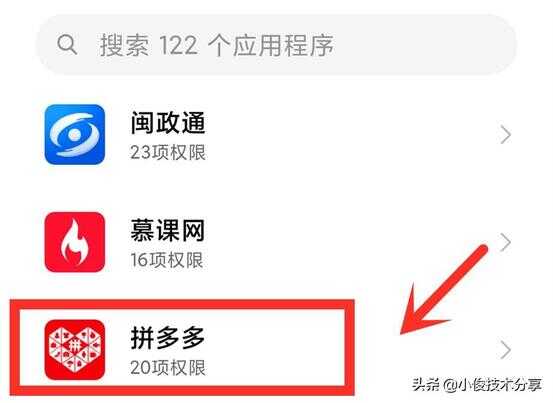 在【应用权限管理界面】找到【拼多多】并且点进去