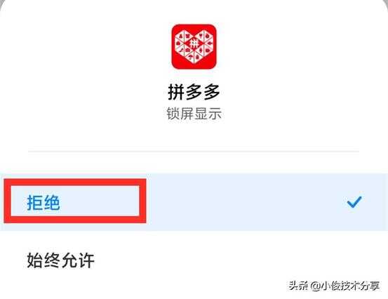我给它设置为【拒绝】,这样设置后,我们在锁屏时候就不会收到【拼多多】的弹窗广告了!