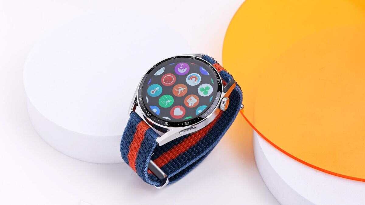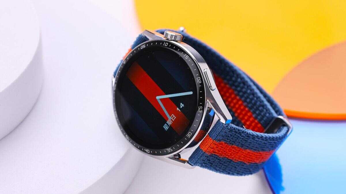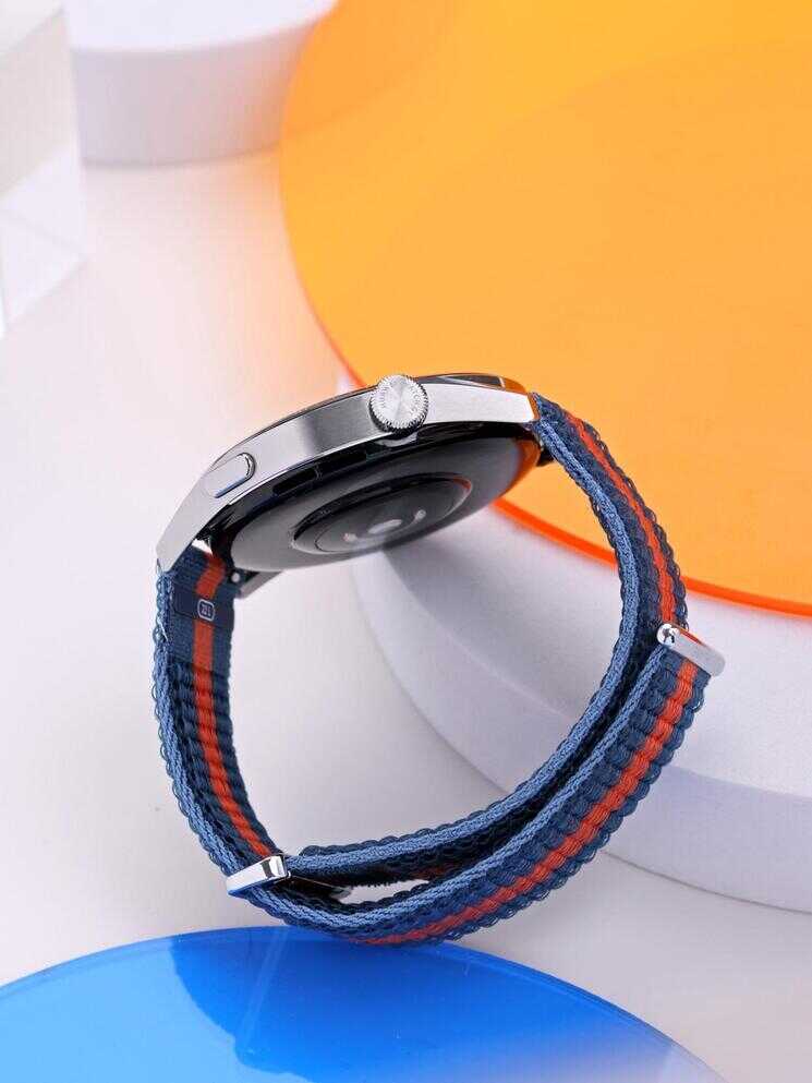上手第一眼,就能看到华为WATCH GT3外观方面的调整。表盘方面,屏幕边缘处依旧保留了时间刻度;但表冠却进行了优化:右侧上键是带纹路的3D旋转表冠,可旋转可按压;右侧下键则是常规的功能按键,做成了扁平状。表带方面,本次我们拿到了华为WATCH GT3蓝橙编织表带(支持快速佩戴),配合46mm表盘+钢色不锈钢的表壳,大气干练,推荐男士们买这款。