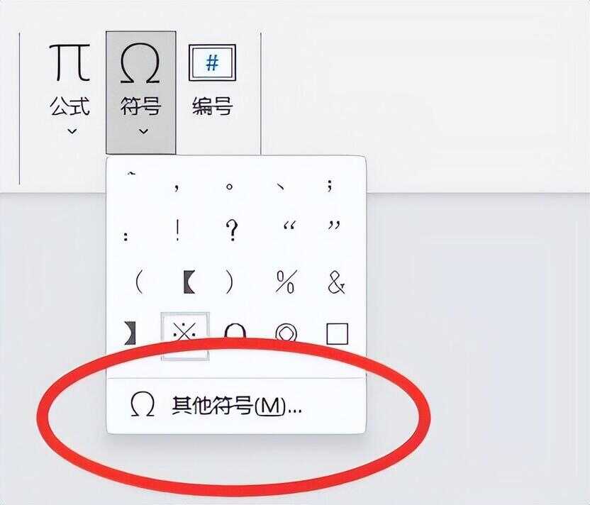 步骤2、点击符号后,下拉子菜单窗口找到“其他符号”如下图所示: