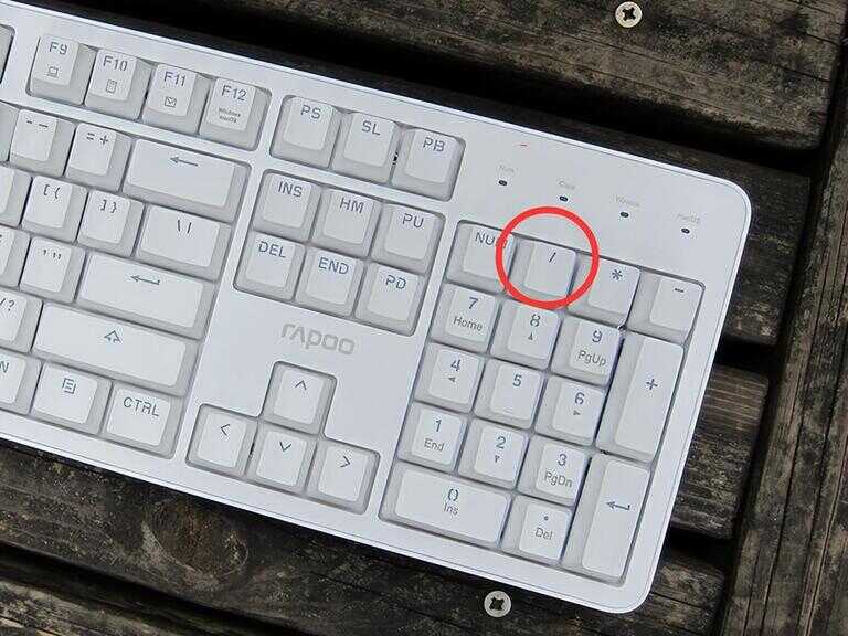 2、第二个除号“/”按键,在键盘右侧数字键第一排,紧邻“Num Lock”按键。如下图所示: