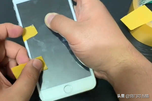 第一步、一般我们自己贴手机膜的话,很难对齐手机贴整齐,不是贴歪了就是出现大量的气泡,其实我们只需要准备一个工具,那就是胶带了。
