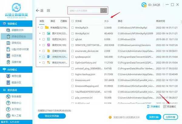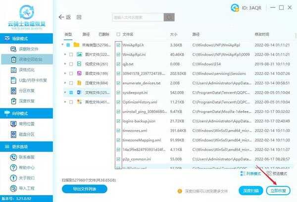 注意:如果“误清空回收站”扫描下未找到文件,不要气馁,建议使用“深度扫描”再进行一次扫描。
