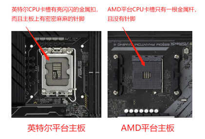 小编先用一张图对比区分英特尔平台主板和AMD平台主板: