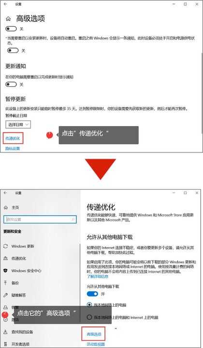 步骤1.我们回到方法二的最后一步这个位置,点击一下“传递优化”,点击属于它的“高级选项”;