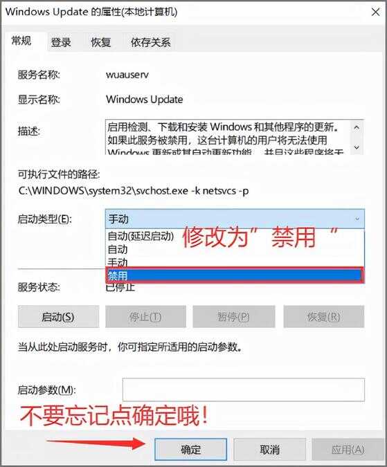 步骤3.在弹出的界面,将启动类型修改为“禁用”后点击确定就OK了!
