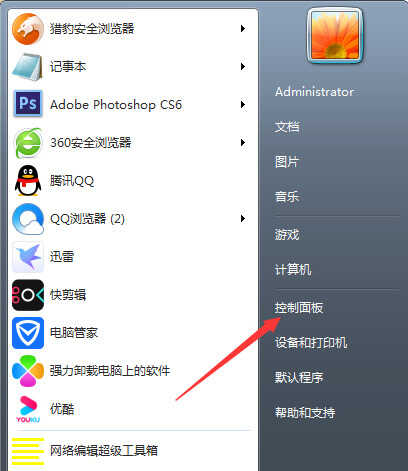 1.首先我们进入到开始菜单当中,打开控制面板页面。