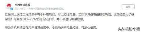 根据华为终端官方客服给出的答复是:工程菜单中的补电功能,实际上不具备电量校准功能,此功能是为了确保出厂电量在60%-75%之间而设计的,并不会进行电量校准。说得通俗点,此功能是手机出厂前,工程师测电池使用的,跟我们没有任何关系。